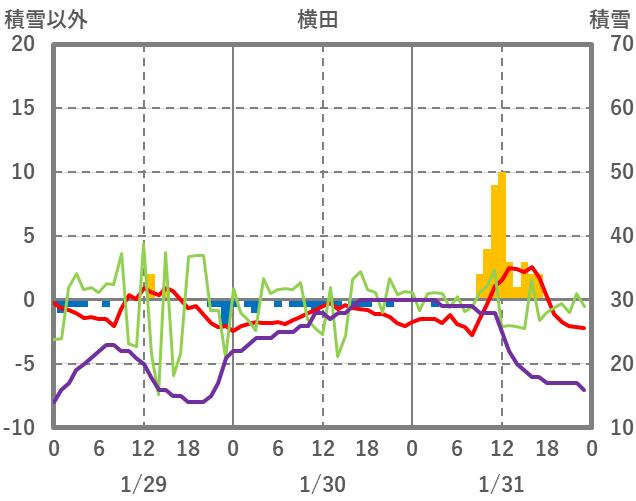 | 日 | 時 | 気温 | 降水 | 風向/風速 | 日照 | 積雪 | 降雪 |