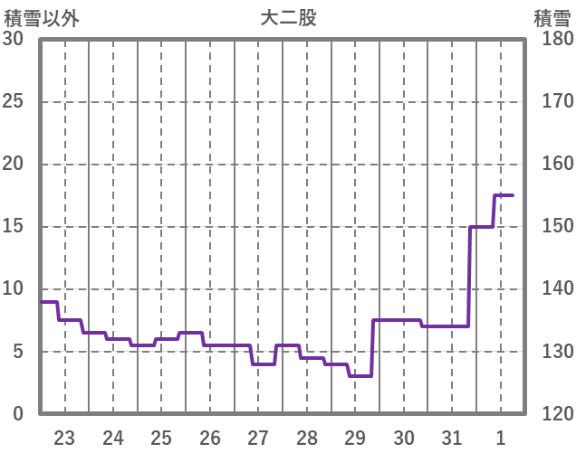 | 日 | 時 | 気温 | 降水 | 風向/風速 | 日照 | 積雪 | 降雪 |