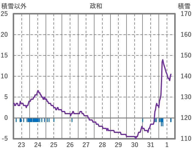 | 日 | 時 | 気温 | 降水 | 風向/風速 | 日照 | 積雪 | 降雪 |