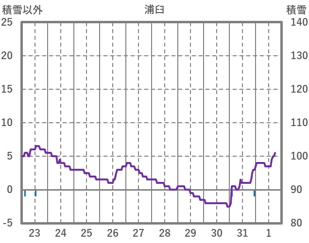 | 日 | 時 | 気温 | 降水 | 風向/風速 | 日照 | 積雪 | 降雪 |