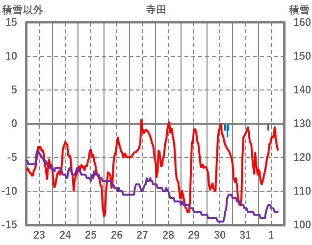 | 日 | 時 | 気温 | 降水 | 風向/風速 | 日照 | 積雪 | 降雪 |