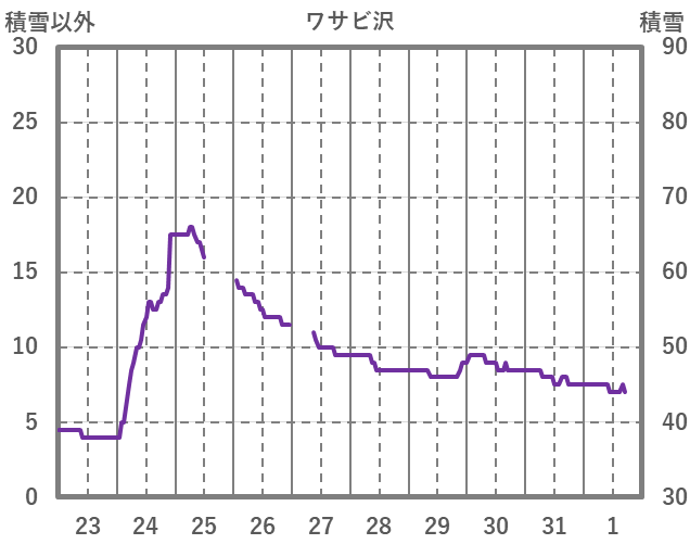| 日 | 時 | 気温 | 降水 | 風向/風速 | 日照 | 積雪 | 降雪 |