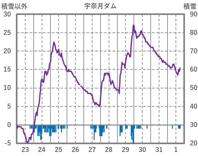 | 日 | 時 | 気温 | 降水 | 風向/風速 | 日照 | 積雪 | 降雪 |