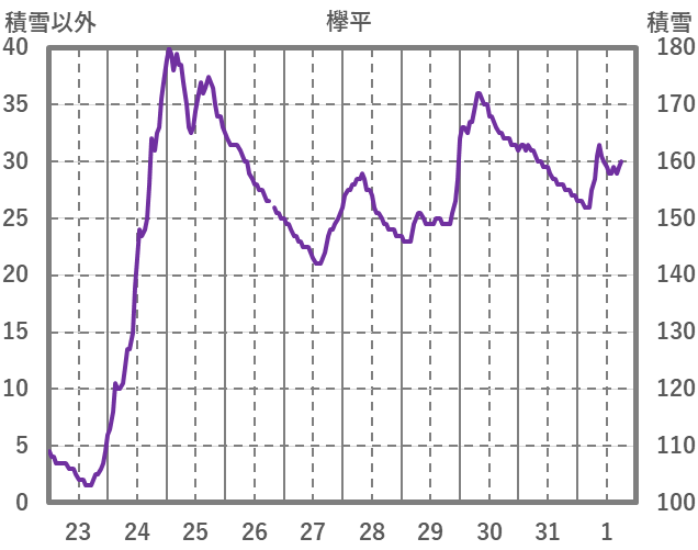 | 日 | 時 | 気温 | 降水 | 風向/風速 | 日照 | 積雪 | 降雪 |