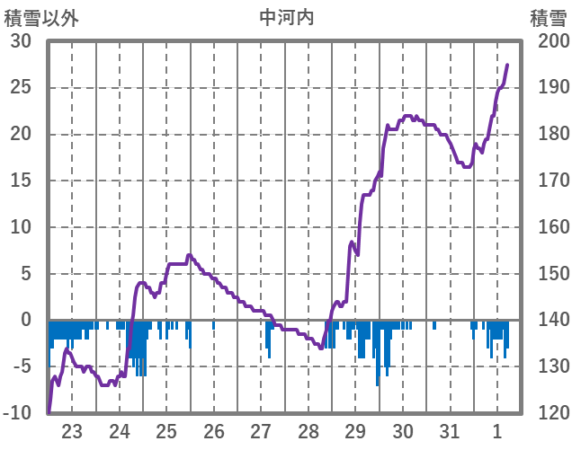 | 日 | 時 | 気温 | 降水 | 風向/風速 | 日照 | 積雪 | 降雪 |