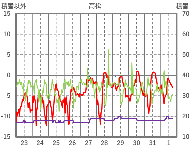 | 日 | 時 | 気温 | 降水 | 風向/風速 | 日照 | 積雪 | 降雪 |