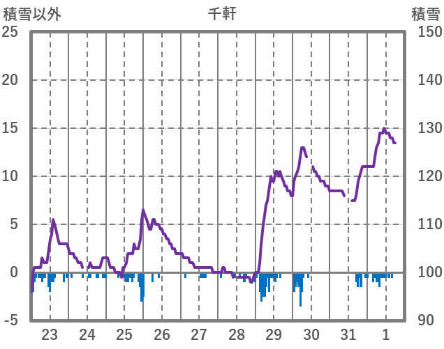 | 日 | 時 | 気温 | 降水 | 風向/風速 | 日照 | 積雪 | 降雪 |
