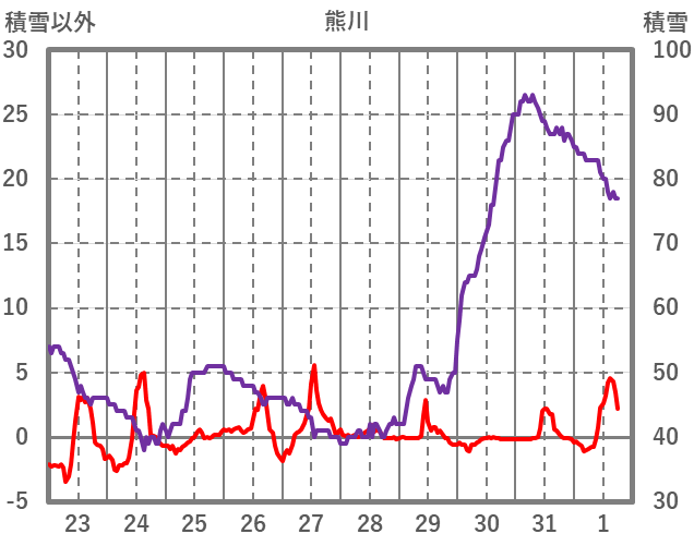 | 日 | 時 | 気温 | 降水 | 風向/風速 | 日照 | 積雪 | 降雪 |