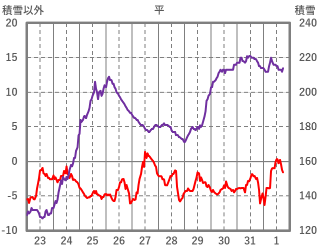 | 日 | 時 | 気温 | 降水 | 風向/風速 | 日照 | 積雪 | 降雪 |