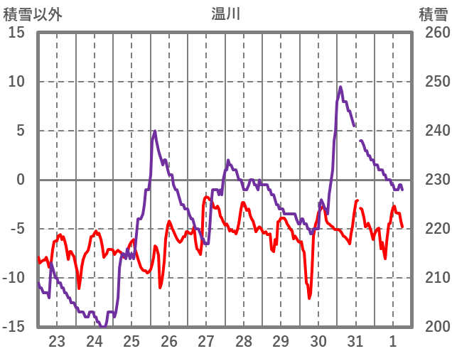 | 日 | 時 | 気温 | 降水 | 風向/風速 | 日照 | 積雪 | 降雪 |