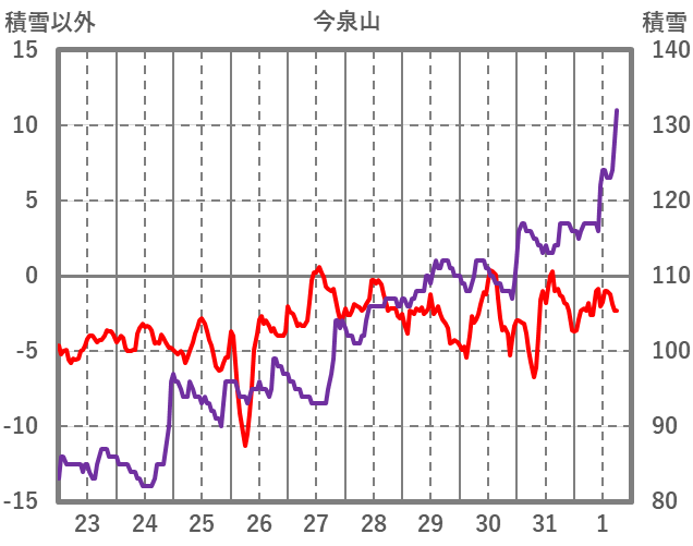 | 日 | 時 | 気温 | 降水 | 風向/風速 | 日照 | 積雪 | 降雪 |