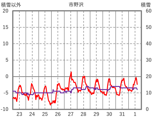 | 日 | 時 | 気温 | 降水 | 風向/風速 | 日照 | 積雪 | 降雪 |