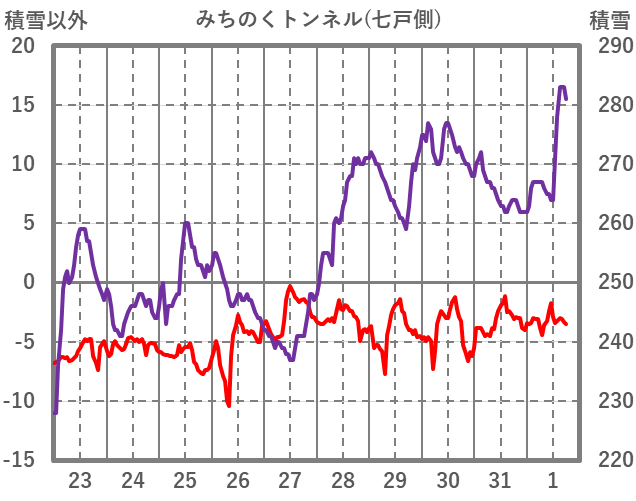 | 日 | 時 | 気温 | 降水 | 風向/風速 | 日照 | 積雪 | 降雪 |
