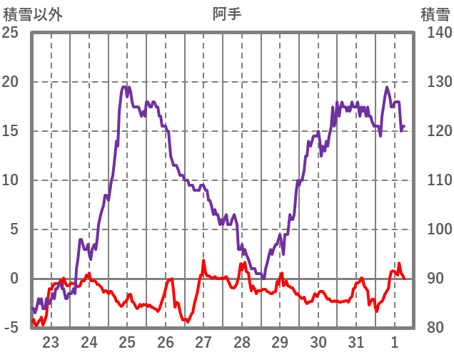 | 日 | 時 | 気温 | 降水 | 風向/風速 | 日照 | 積雪 | 降雪 |