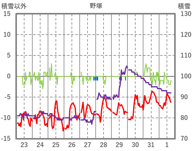 | 日 | 時 | 気温 | 降水 | 風向/風速 | 日照 | 積雪 | 降雪 |