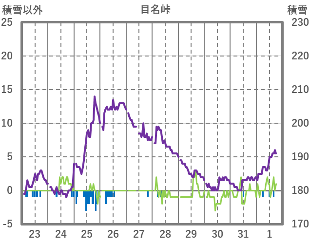| 日 | 時 | 気温 | 降水 | 風向/風速 | 日照 | 積雪 | 降雪 |