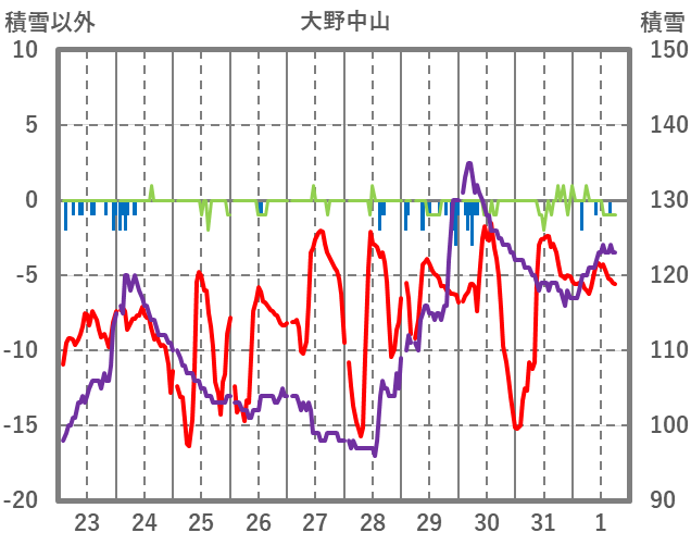 | 日 | 時 | 気温 | 降水 | 風向/風速 | 日照 | 積雪 | 降雪 |