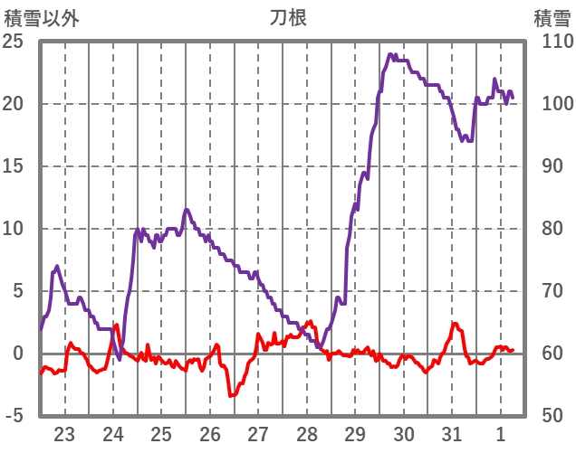 | 日 | 時 | 気温 | 降水 | 風向/風速 | 日照 | 積雪 | 降雪 |