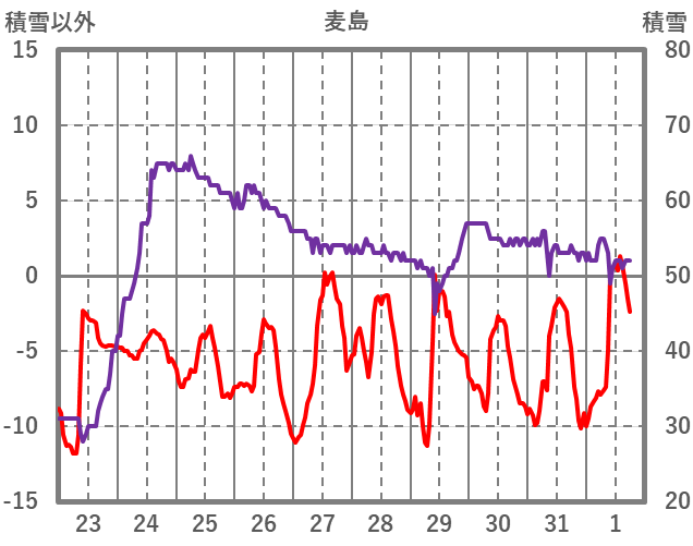 | 日 | 時 | 気温 | 降水 | 風向/風速 | 日照 | 積雪 | 降雪 |