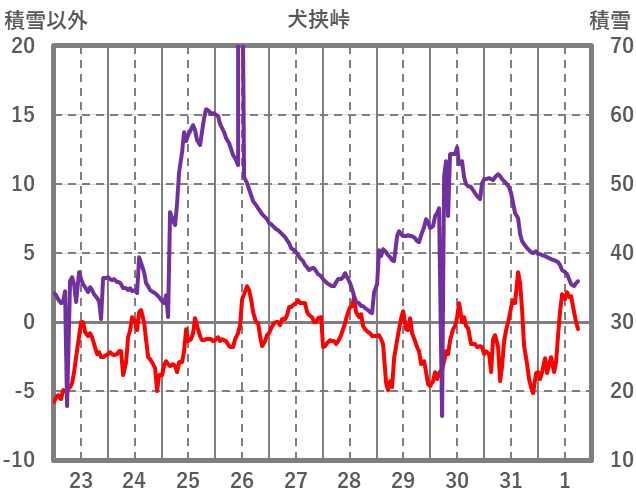 | 日 | 時 | 気温 | 降水 | 風向/風速 | 日照 | 積雪 | 降雪 |