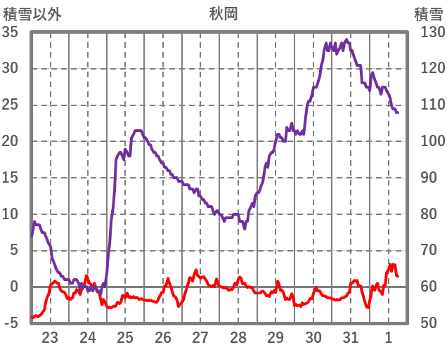 | 日 | 時 | 気温 | 降水 | 風向/風速 | 日照 | 積雪 | 降雪 |