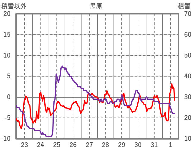 | 日 | 時 | 気温 | 降水 | 風向/風速 | 日照 | 積雪 | 降雪 |