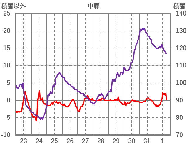 | 日 | 時 | 気温 | 降水 | 風向/風速 | 日照 | 積雪 | 降雪 |