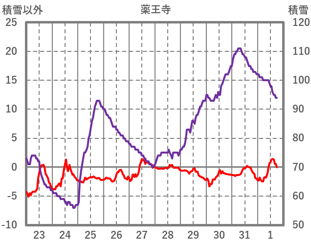 | 日 | 時 | 気温 | 降水 | 風向/風速 | 日照 | 積雪 | 降雪 |