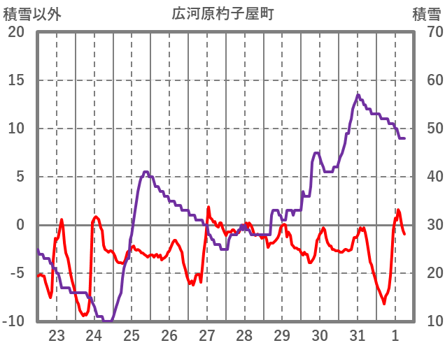 | 日 | 時 | 気温 | 降水 | 風向/風速 | 日照 | 積雪 | 降雪 |