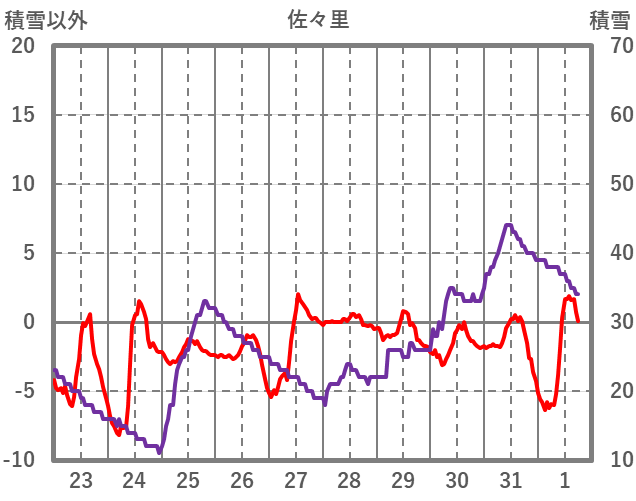 | 日 | 時 | 気温 | 降水 | 風向/風速 | 日照 | 積雪 | 降雪 |