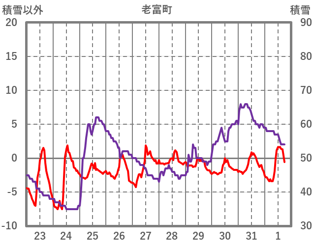 | 日 | 時 | 気温 | 降水 | 風向/風速 | 日照 | 積雪 | 降雪 |