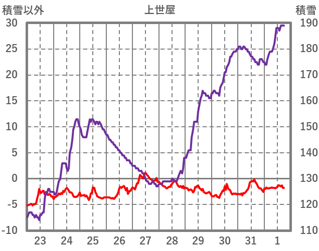 | 日 | 時 | 気温 | 降水 | 風向/風速 | 日照 | 積雪 | 降雪 |