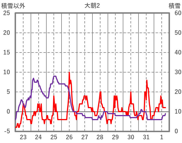 | 日 | 時 | 気温 | 降水 | 風向/風速 | 日照 | 積雪 | 降雪 |