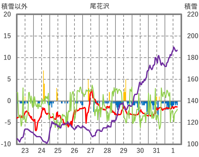 | 日 | 時 | 気温 | 降水 | 風向/風速 | 日照 | 積雪 | 降雪 |