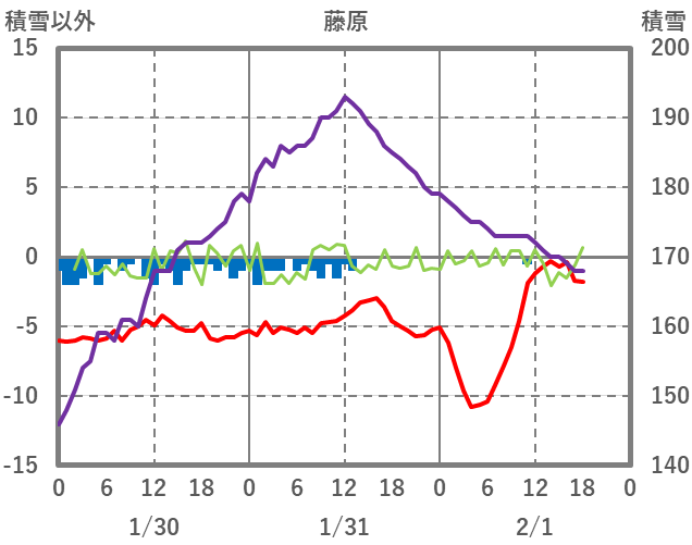 | 日 | 時 | 気温 | 降水 | 風向/風速 | 日照 | 積雪 | 降雪 |