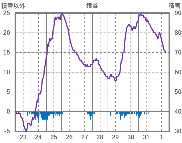 | 日 | 時 | 気温 | 降水 | 風向/風速 | 日照 | 積雪 | 降雪 |
