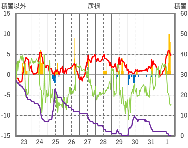 | 日 | 時 | 気温 | 降水 | 風向/風速 | 日照 | 積雪 | 降雪 |