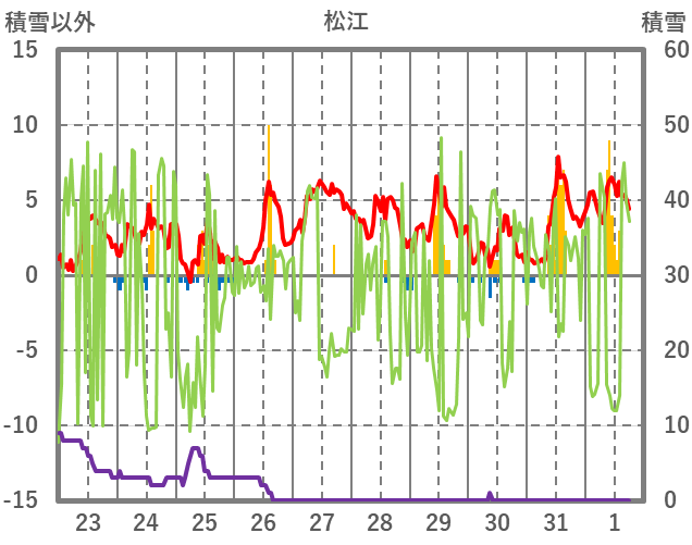 | 日 | 時 | 気温 | 降水 | 風向/風速 | 日照 | 積雪 | 降雪 |