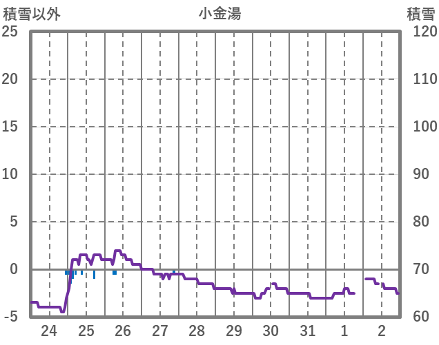 | 日 | 時 | 気温 | 降水 | 風向/風速 | 日照 | 積雪 | 降雪 |