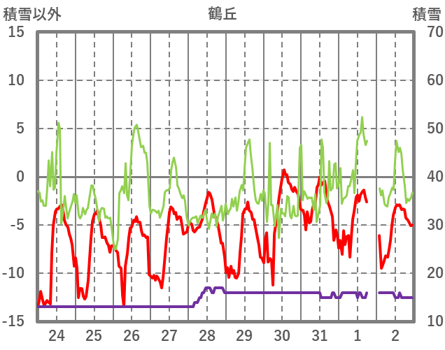 | 日 | 時 | 気温 | 降水 | 風向/風速 | 日照 | 積雪 | 降雪 |