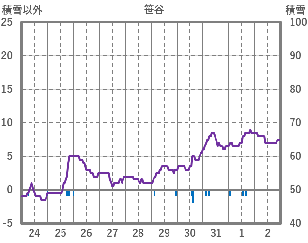 | 日 | 時 | 気温 | 降水 | 風向/風速 | 日照 | 積雪 | 降雪 |