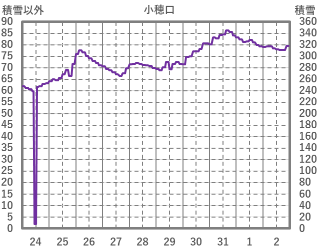| 日 | 時 | 気温 | 降水 | 風向/風速 | 日照 | 積雪 | 降雪 |