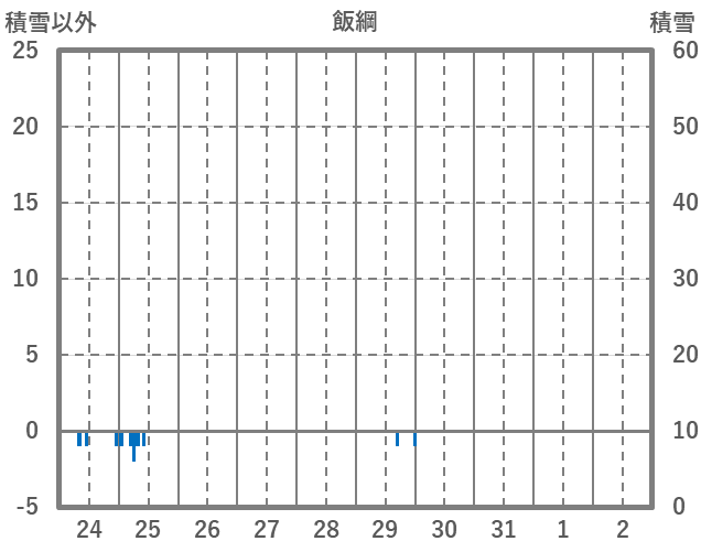 | 日 | 時 | 気温 | 降水 | 風向/風速 | 日照 | 積雪 | 降雪 |