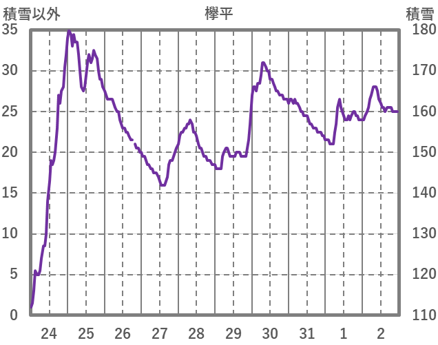| 日 | 時 | 気温 | 降水 | 風向/風速 | 日照 | 積雪 | 降雪 |
