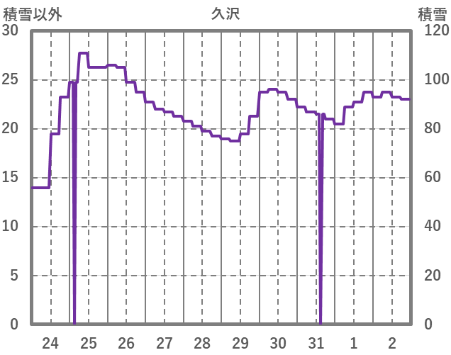 | 日 | 時 | 気温 | 降水 | 風向/風速 | 日照 | 積雪 | 降雪 |