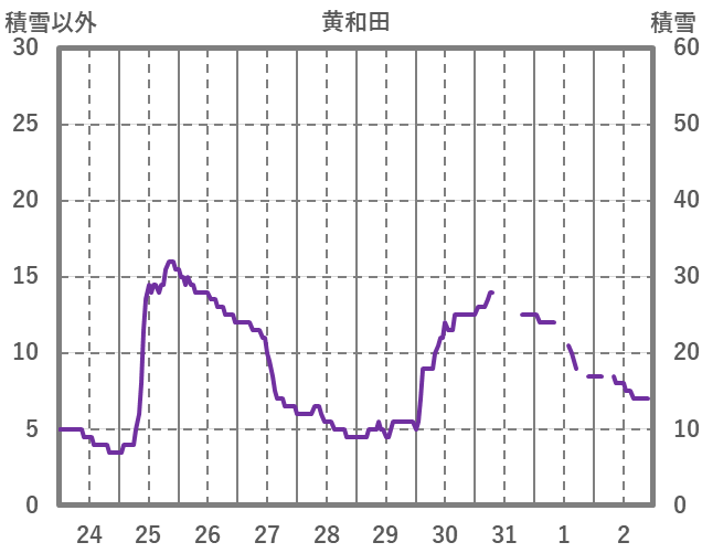 | 日 | 時 | 気温 | 降水 | 風向/風速 | 日照 | 積雪 | 降雪 |