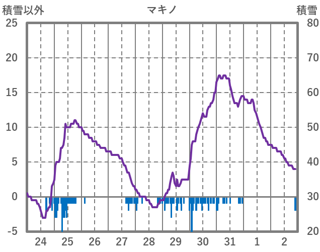 | 日 | 時 | 気温 | 降水 | 風向/風速 | 日照 | 積雪 | 降雪 |