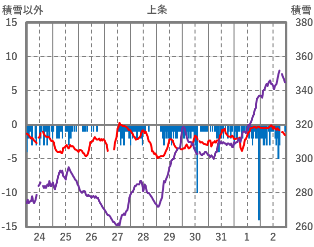 | 日 | 時 | 気温 | 降水 | 風向/風速 | 日照 | 積雪 | 降雪 |