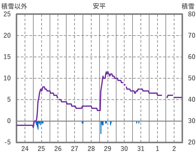 | 日 | 時 | 気温 | 降水 | 風向/風速 | 日照 | 積雪 | 降雪 |