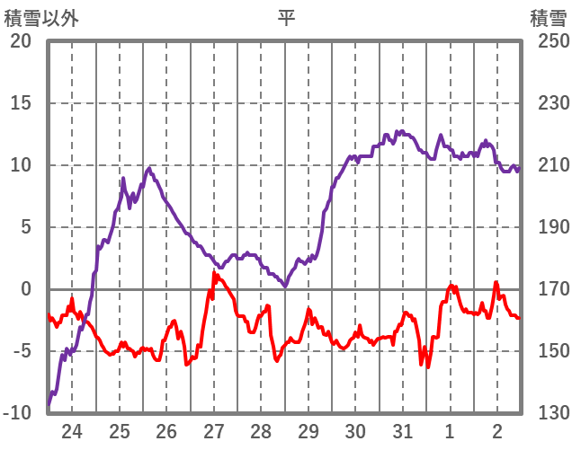 | 日 | 時 | 気温 | 降水 | 風向/風速 | 日照 | 積雪 | 降雪 |
